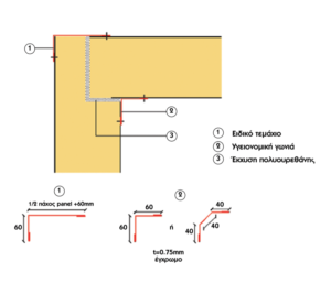 Πάνελ πλαγιοκάλυψης με αφρό πολυουρεθάνης ψυκτικών θαλάμων πάχους 8cm σε λευκό και εκρού χρώμα με επίπεδη ή ραμποτέ διαμόρφωση.